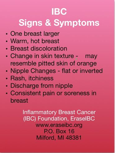 The Inflammatory Breast Cancer Foundation is comprised of a group of concerned volunteers who came together with the hope of making a difference in the way Inflammatory Breast Cancer (IBC) is perceived by both the general public and the medical community.